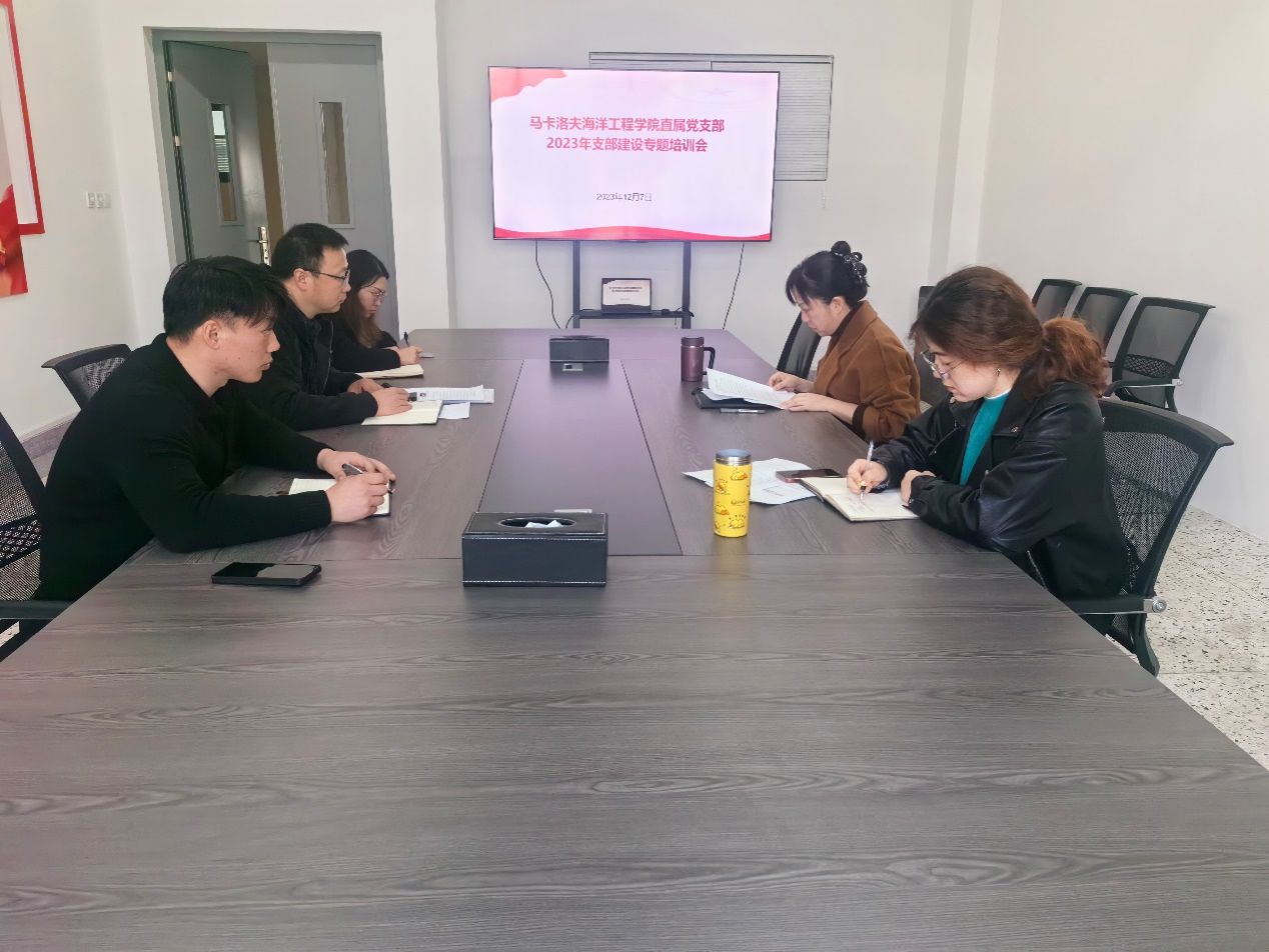 为深入贯彻落实习近平新时代中国特色社会主义思想和党的二十大精神,全面贯彻新时代党的建设总要求和新时代党的组织路线,推动全面从严治党向基层延伸,着力推进学院直属党支部建设的科学化、规范化、制度化水平,进一步增强党支部的创造力、凝聚力和战斗力,为推动中外合作办学事业高质量发展提供坚强有力的组织保证,确保学校第一次党代会关于国际化人才培养的目标任务落地见效,2023年12月7日,马卡洛夫海洋工程学院召开支部建设专题培训会。学院直属党支部书记徐岚主持培训会,全体教职工党员参加会议。