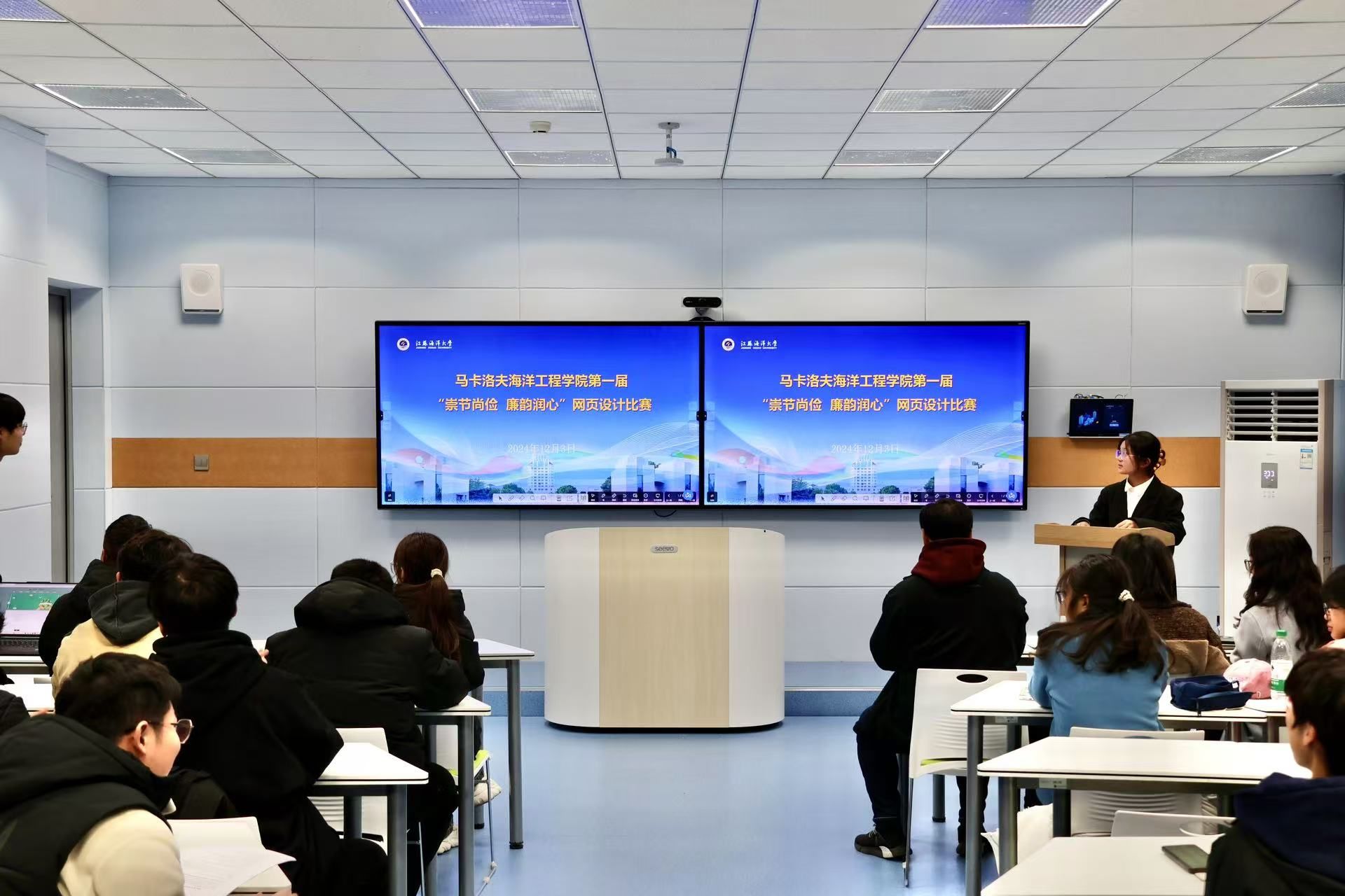 为强化学生价值认知,深植节俭廉洁理念,让思政教育在工科业务实践中“活”起来,帮助工科学生将廉洁美德内化于心,外化于行,做有担当、守底线的时代新人。2024年12月3日,马卡洛夫海洋工程学院在文华楼606举办学院第一届“崇节尚俭 廉韵润心”主题网页设比赛成果汇报展示。学院师生党员代表、入党积极分子和研究生代表参加活动。院长徐岚点评比赛并作总结讲话。