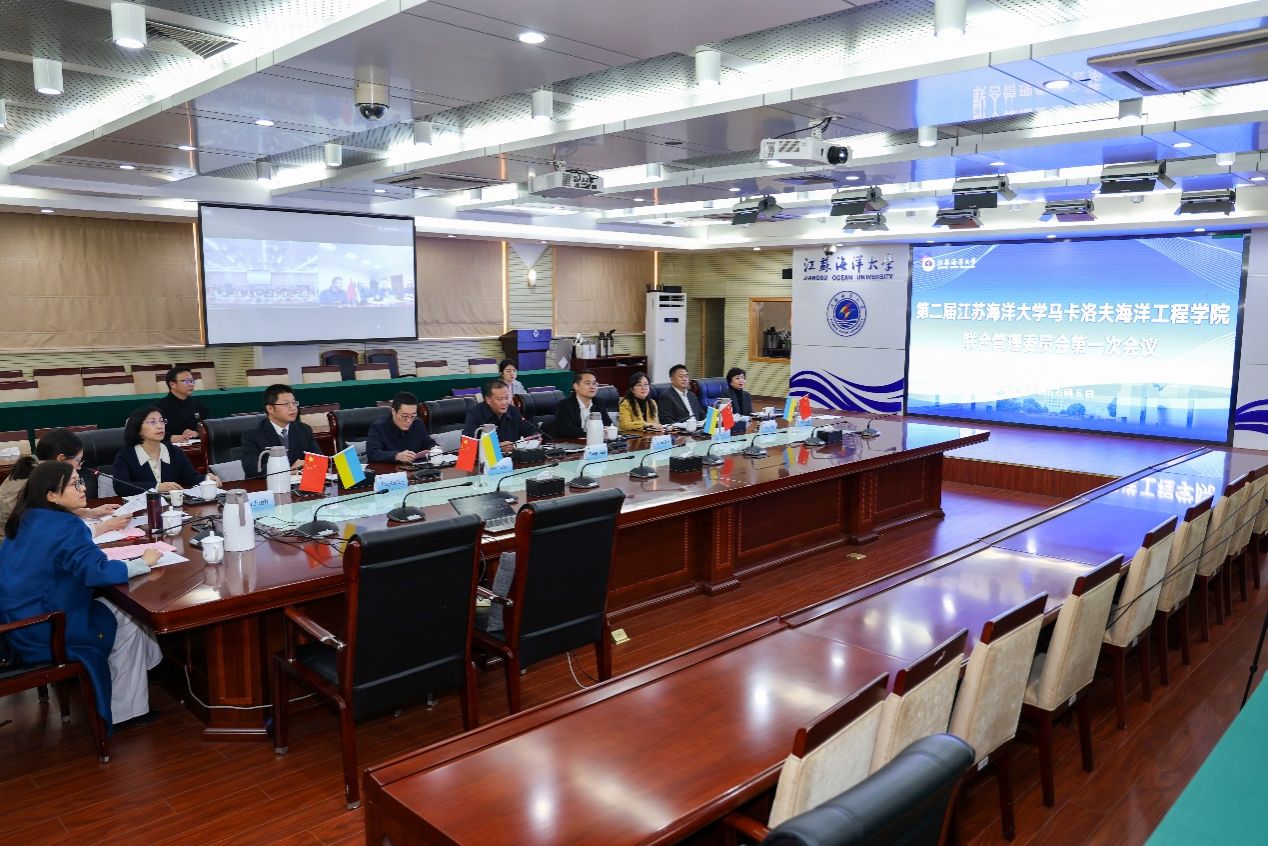 12月6日下午,第二届江苏海洋大学马卡洛夫海洋工程学院联合管理委员会第一次会议在我校东海厅以线上会议的形式顺利举行。江苏海洋大学校长汤建、副校长申欣、副校长张元良、乌克兰马卡洛夫国立造船大学校长Trushliakov Eugeniy、副校长Mykhailov Mykhailo出席会议。马卡洛夫国立造船大学国际合作教育中心和自动化学院负责人、江苏海洋大学马卡洛夫海洋工程学院、海洋工程学院、教务处、国际交流与合作处相关负责人参加会议。江苏海洋大学校长汤建主持会议。