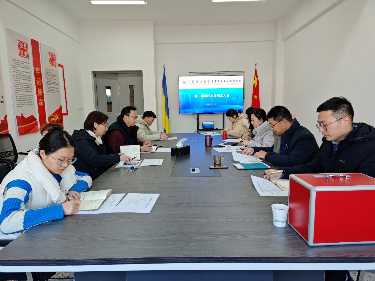 为进一步规范教职工代表大会制度,依法保障广大教职工参与学校民主管理、民主决策、民主监督,充分发挥二级教职工代表大会在学校各项事业发展中的重要作用,1月3日下午,马卡洛夫海洋工程学院在文华楼608会议室召开一届四次教职工大会。党委组织部安排专人监督中层干部述职述廉工作,学院全体教职工参加会议,学院分工会主席刘葳兴主持会议。