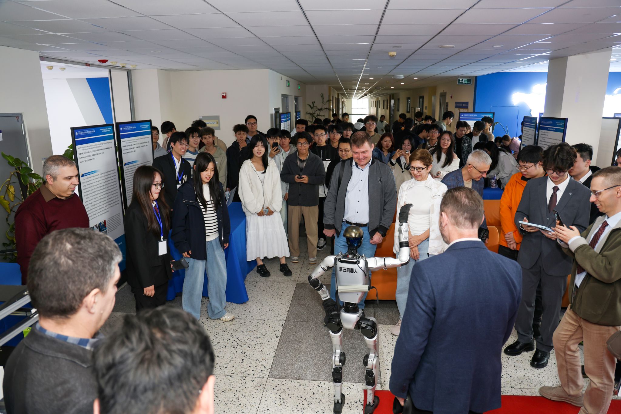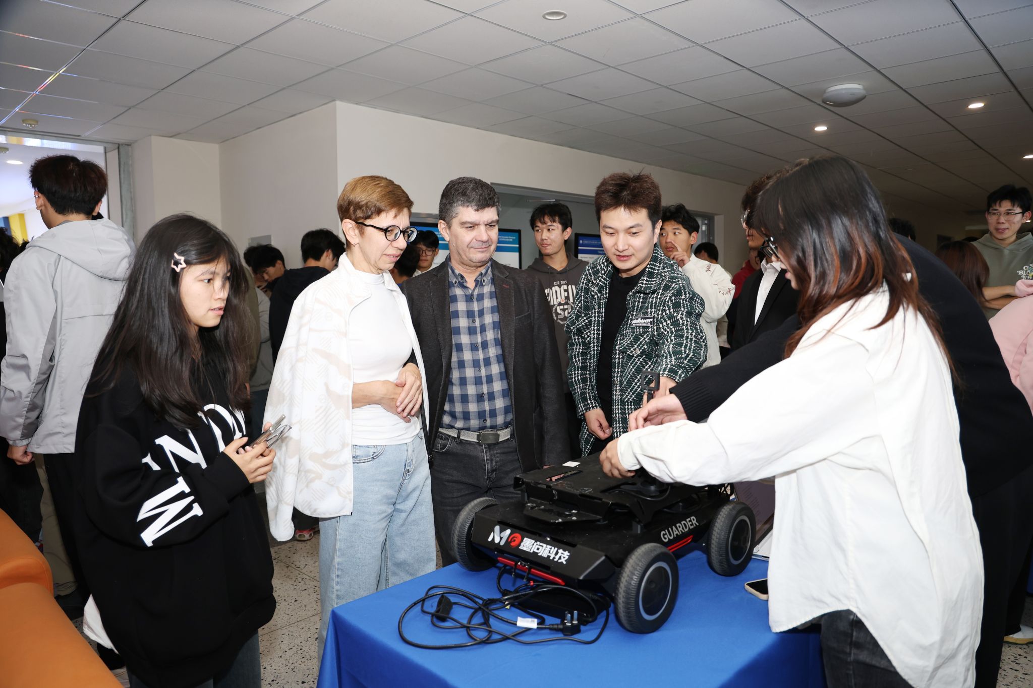 为营造中外合作办学机构科技创新氛围,突出成果导向的“新工科”人才培养模式的优势,总结学院第一个办学周期学生创新实践能力培养成效,进一步调动学生参与实践创新的热情。10月29日下午,马卡洛夫海洋工程学院在文华楼6楼举办2025学生创新成果展。学院党政班子成员、专业课程社团“科创苑”指导教师、全体外籍教师、学院教职工和学生代表参加创新成果展。该活动自9月份启动以来,吸引了学院近20个国家级学科竞赛获奖项目参加,参展作品覆盖机器人开发、海洋工程设计、智能装备等领域。