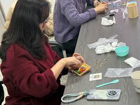 活动现场,工会提前准备了丰富多彩的马赛克片、专用粘合剂、填缝剂以及各式杯垫、笔筒等底胚。在刘葳兴对马赛克艺术的基本内容和制作流程介绍后,大家从挑选图案、设计配色开始,亲手将一粒粒小巧精致的马赛克片仔细拼贴、组合。过程中,中外女教师们互相交流创意、探讨技巧,活动现场充满了欢声笑语。经过精心创作,一件件色彩斑斓、独具匠心的马赛克杯垫、笔筒等作品陆续诞生,每一件都凝聚着创作者的巧思与对美好生活的热爱。