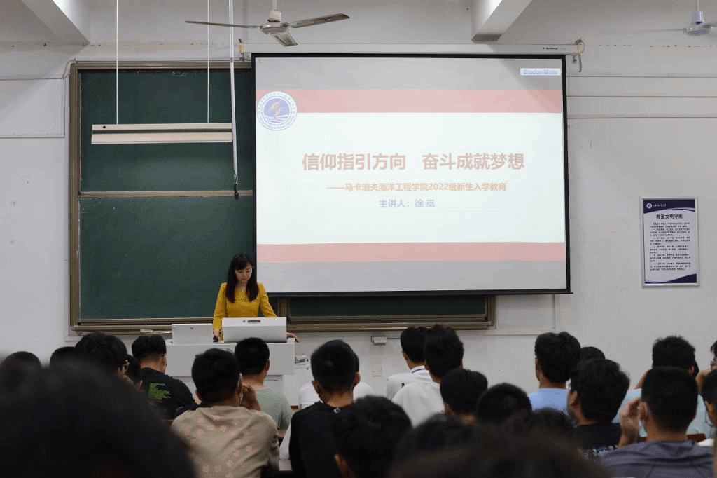 习近平总书记指出人民有信仰、民族有希望,国家有力量。为引导新生传承红色基因,构筑中国精神、中国价值、中国力量,培养德智体美劳全面发展的新时代社会主义接班人,9月19日晚,马卡洛夫海洋工程学院直属党支部书记、常务副院长徐岚在文通楼225室为马卡洛夫海洋工程学院全体新生开展了“信仰指引方向 奋斗成就梦想”专题讲座。