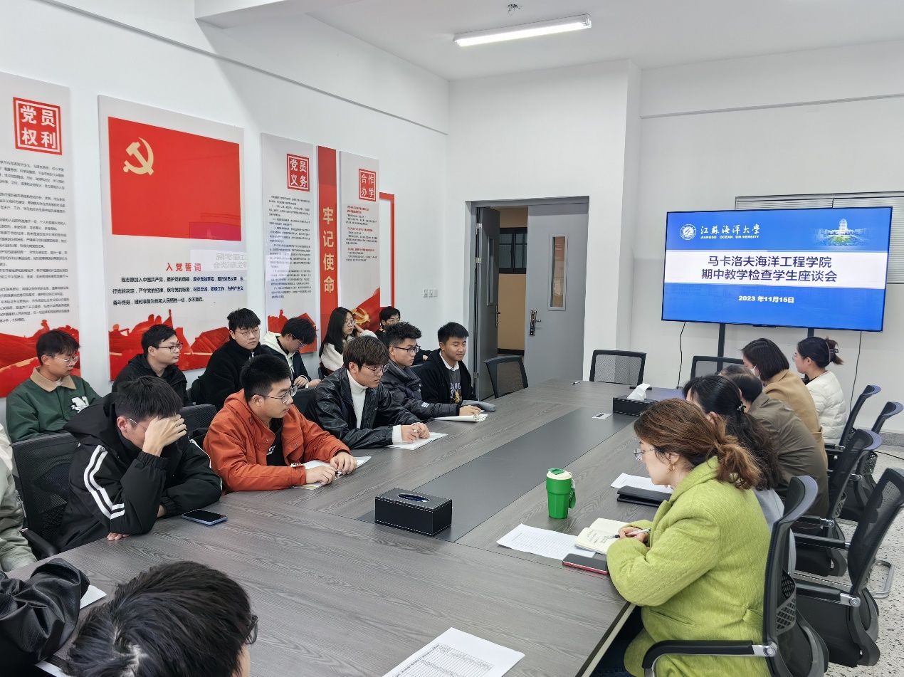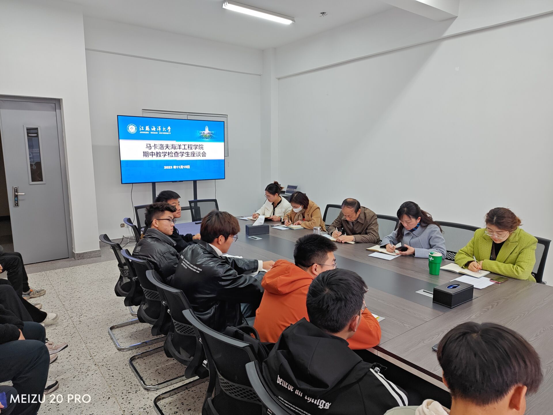 为了解学生学习动态与学习需求,加强学院教学管理工作,提高教学质量,2023年11月15日马卡洛夫海洋工程学院在文华楼608会议室组织开展期中教学检查学生座谈会。学院院长舒小平,直属党支部书记、常务副院长徐岚,院长助理刘葳兴,教学办主任史秀丽,辅导员徐嘉婕以及学院各班学生代表参加本次座谈会。