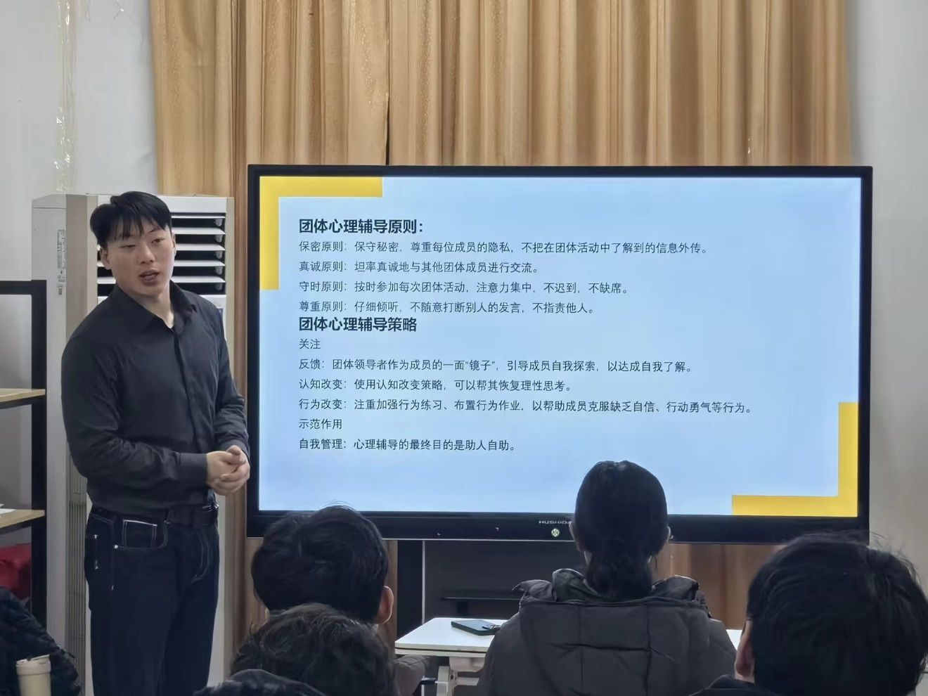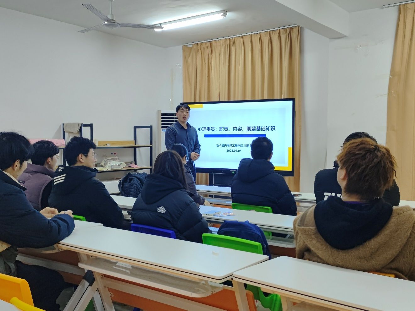 为帮助心理委员更好地了解同学们的心理健康,解决同学们的心理问题,马卡洛夫海洋工程学院于3月5日在A9/A10-205一站式学生社区开展了本科生和研究生的心理委员培训,本次培训由辅导员祁明慧主持。