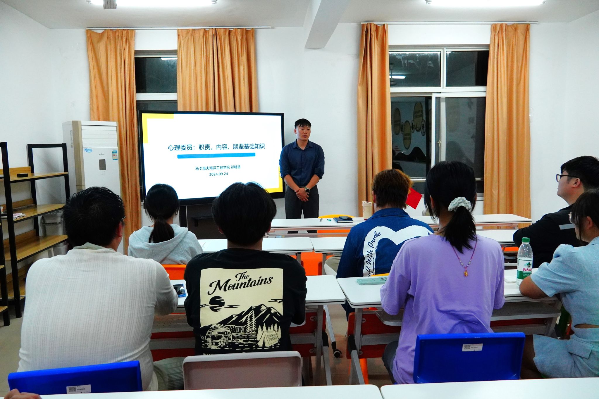 为提高大学生群体的心理健康水平,培养更多专业心理健康守护者,马卡洛夫海洋工程学院于9月24日在A9-A10一站式学生社区举行心理委员培训会。各年级心理委员参加培训会,辅导员祁明慧主持培训会。