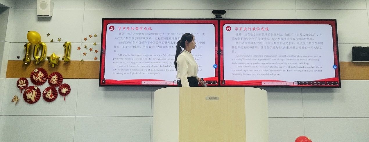 “华罗庚、邓稼先、王淦昌、华龙一号、中国北斗团队…”,7位同学中英文讲述一代又一代中国科学家们为科技强国矢志奋斗、接续奋斗的青春故事,引导同学们认识到科技创新在国家发展全局中起着重要作用,正是有着攻克一个又一个科技难关的决心,拼搏出了自立自强的“大国底气”,激励学子们要继续谱写新时代实现中国梦的青春篇章,聚焦国家战略,探索深海,以创新之姿勇攀科技高峰。
