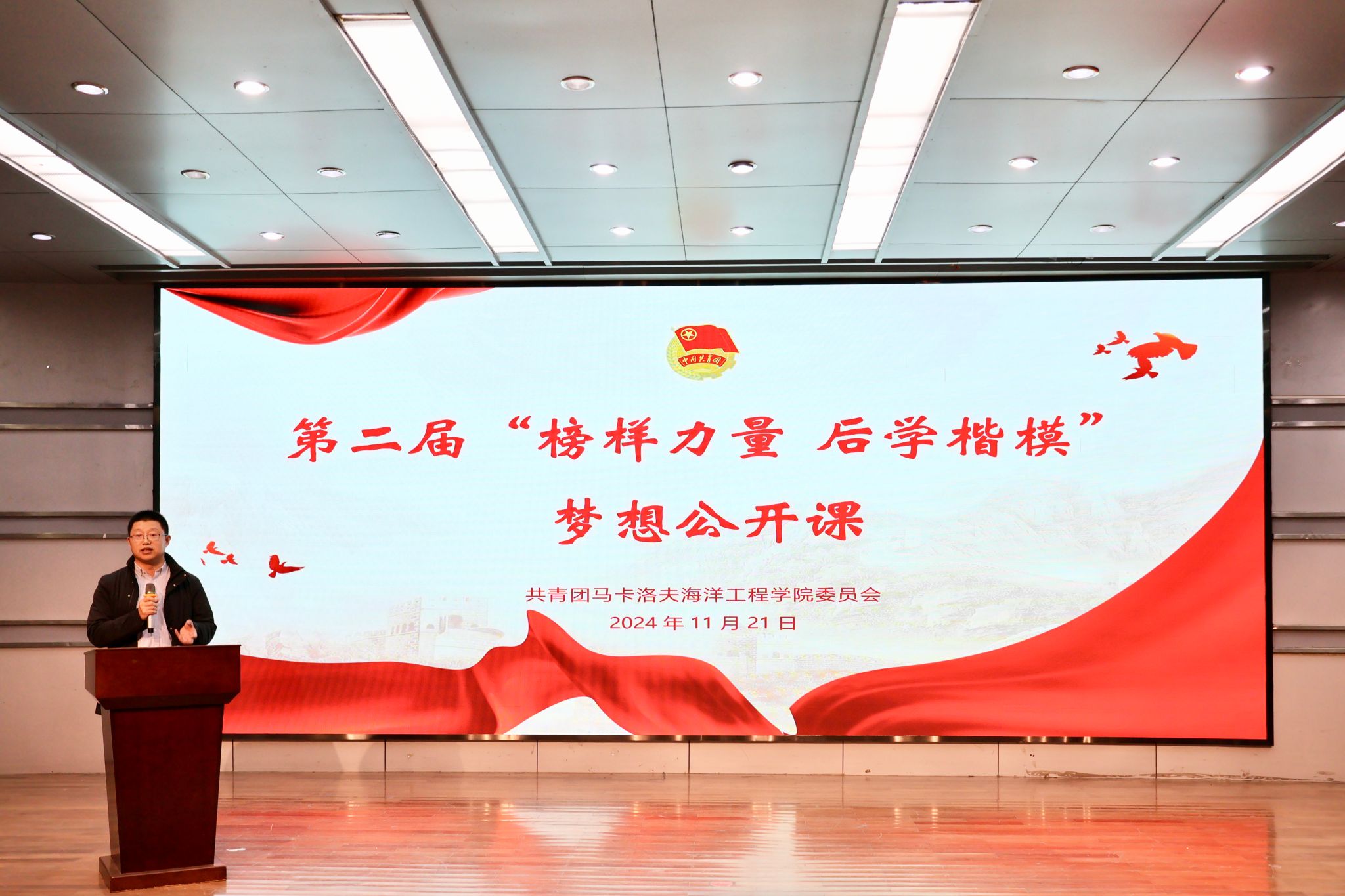 为在全院范围内选树、宣传一批先进青年典型,展现青春作为、彰显青春风采,发挥榜样示范作用,马卡洛夫海洋工程学院于11月21日下午举办第二届“榜样力量 后学楷模”梦想公开课。学院直属党支部书记章峰康、学工办副主任徐嘉婕以及2024级和2023级学生参加此次活动。