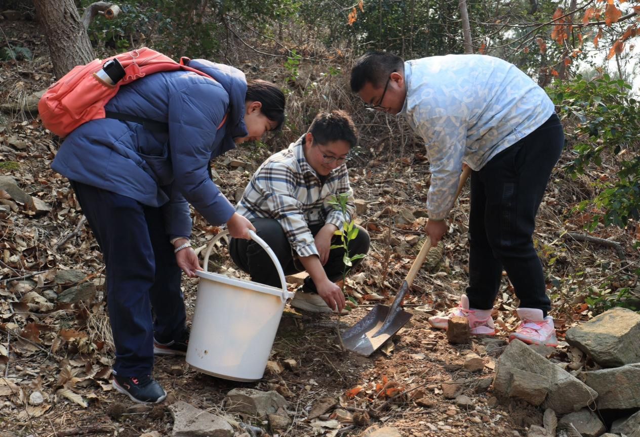 活动当天,本科生和研究生志愿者积极响应号召,在活动组织者的带领下带着植树工具,满怀激情地来到指定植树区域。组织者先详细介绍了树木的品种和耐水性,指导志愿者们如何正确植树以确保树苗成活率。随后同学们自由分组,经过两个多小时的努力,30余棵小树苗在孔雀岭上“安家落户”,为这片土地增添了新的生机与活力。