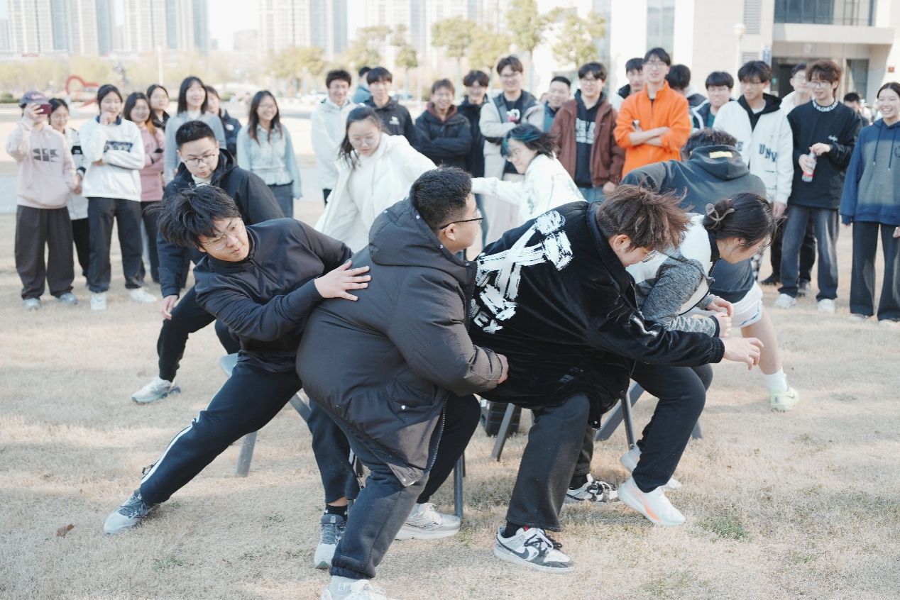 本次活动精心设计投壶、抢板凳、指压板接力、你画我猜、同心击鼓五个项目。下午3点,各参赛人员摩拳擦掌、跃跃欲试。投壶比赛现场中同学们屏气凝神,全神贯注,瞄准壶口一击必中,在一阵阵热烈的掌声中,成就个人高光时刻;抢板凳比赛中,同学们围绕板凳缓慢移动,眼睛紧紧注视着板凳,随时准备抢占位置,在音乐结束时,如离弦之箭冲向板凳,敏捷抢座或是遗憾出局,精彩场面接连不断;指压板接力、你画我猜、同心击鼓项目中,大家团结协作、互相鼓劲,在磨合中增强团队协作能力,于并肩携手中击响战鼓,同学们永不服输的精神博得了大家的热烈掌声。