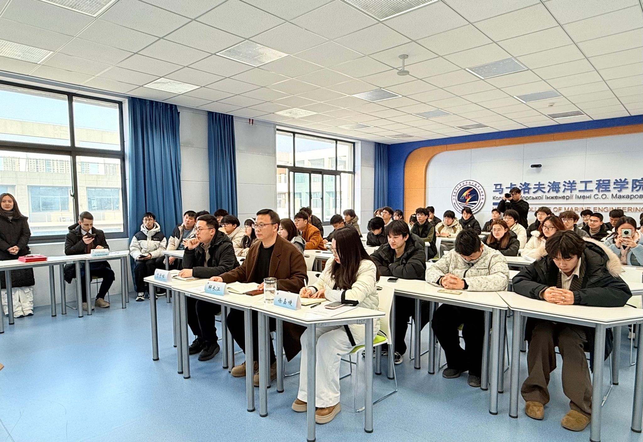 为深入落实立德树人根本任务,持续强化青年学生思想引领与价值塑造,引导全院学子将社会主义核心价值观内化于心、外化于行,3月11日下午,马卡洛夫海洋工程学院于文华楼606活动室顺利开展第四届社会主义核心价值观主题班会评选活动。学院党政办主任解长江、学工办主任徐嘉婕、团委副书记于子程担任本次评选评委,外籍教师GERASIN OLEKSANDR受邀参与活动,全院共4个班级同台竞技、展班级风采。