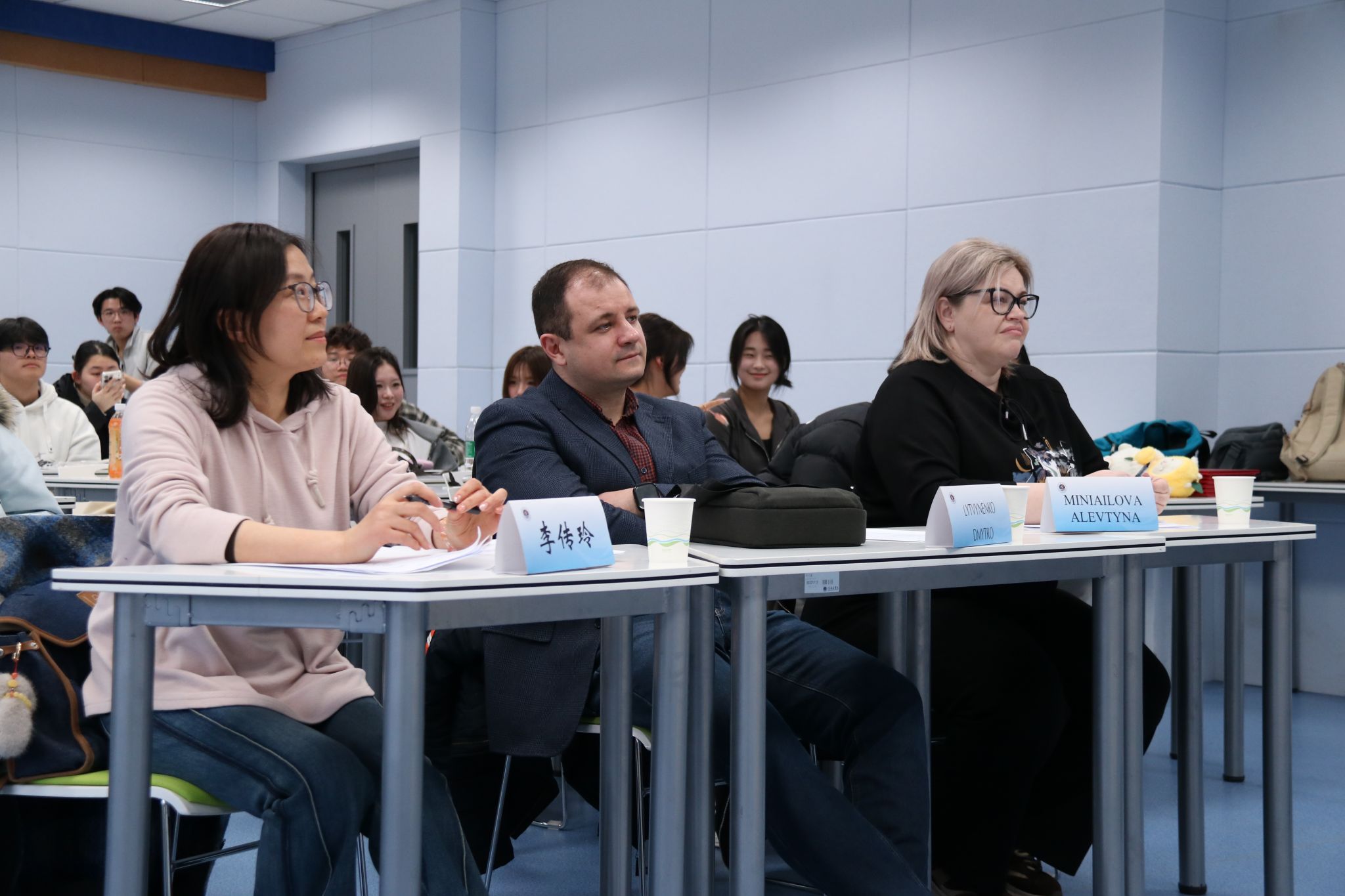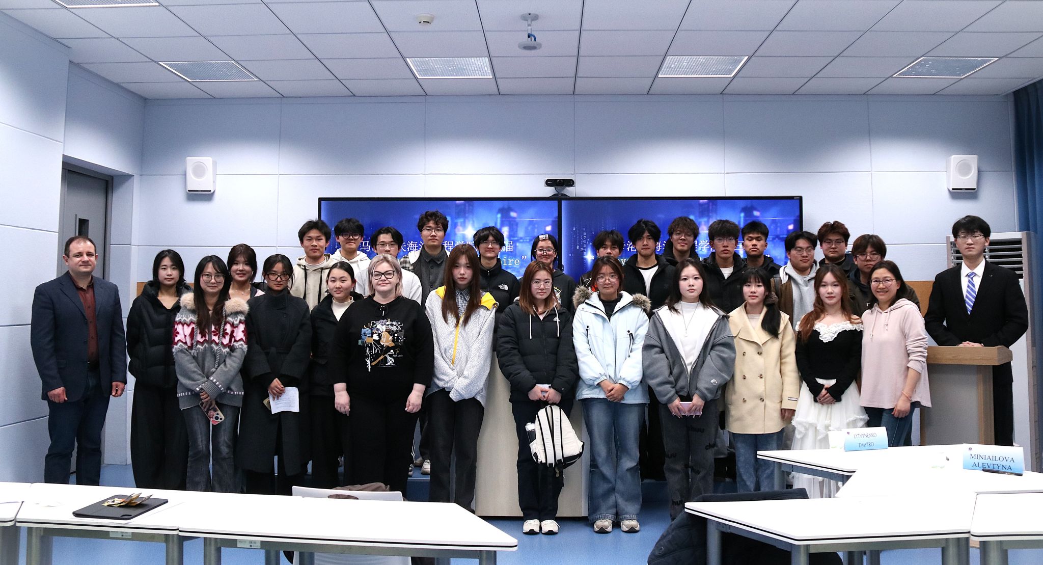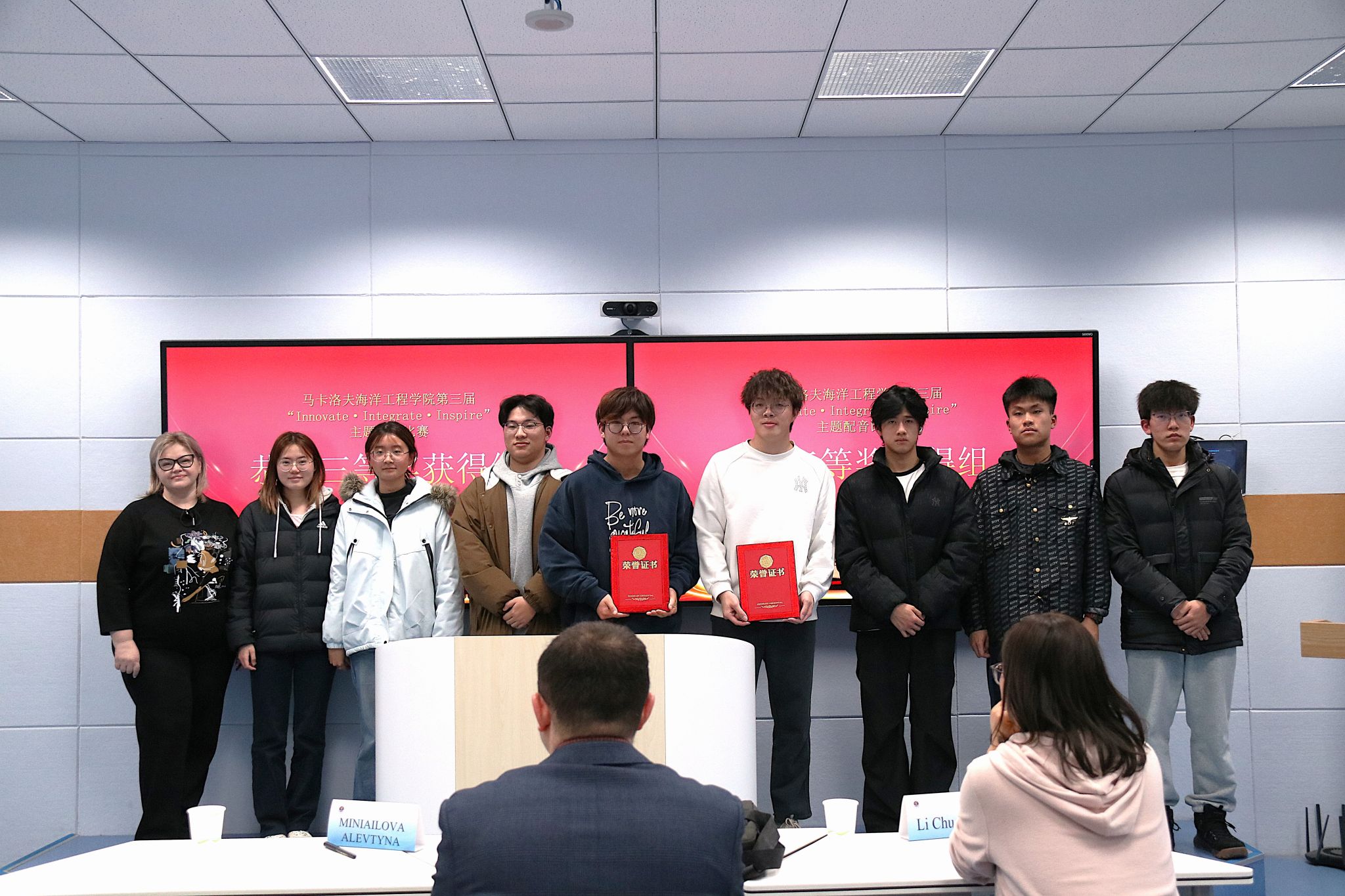 为激发学子英语学习热情,提升语言综合应用能力,马卡洛夫海洋工程学院近日成功举办第三届“Innovate·Integrate·Inspire”主题英语配音比赛。学院学子踊跃参与,为现场观众呈现了一场兼具视听美感与语言魅力的精彩盛宴。本次比赛特邀专业评审团队坐镇,为赛事的公平、专业保驾护航,评审团由两位经验丰富的外籍教师Alevtyna Miniailova、Dmytro Lytvynenko,以及外国语学院教师、学院课程社团“沃德园”指导教师李传玲共同组成。李传玲老师以专业的视角和严谨的态度,为比赛的公平性与专业性筑牢了基础。